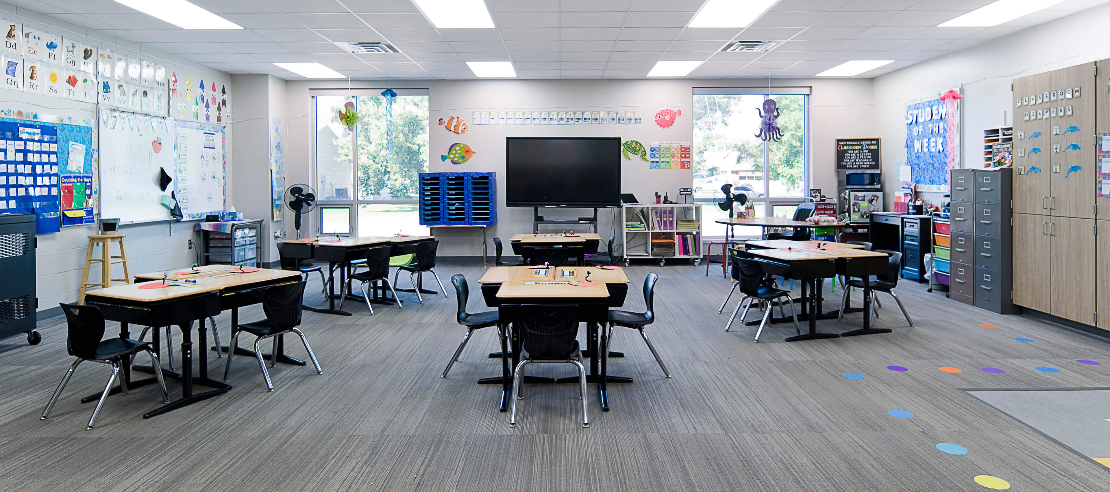 The Corsica-Stickney School District added a 21,000-square-foot expansion, which included a Kindergarten through 5th-grade classroom wing, learning commons, updated administration area, and a secure vestibule, located to the south of the existing gymnasium in Stickney, SD. The classroom wing wrapped around the gymnasium on its west and north sides. The project was completed in two phases: the new classrooms were built first, followed by the demolition of the existing structure. Some of the original terracotta and stonework was salvaged and incorporated into the new building.
