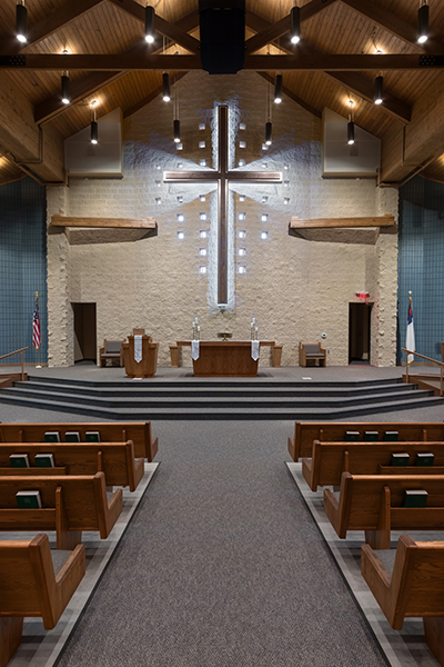 Architecture Incorporated has completed an approximately 15,000 s.f. master plan for Hosanna Lutheran Church, including the sanctuary, narthex, Christian Life Center, offices and classrooms. The first phase includes the sanctuary (which seats approximately 400 people), narthex, office and classrooms.
